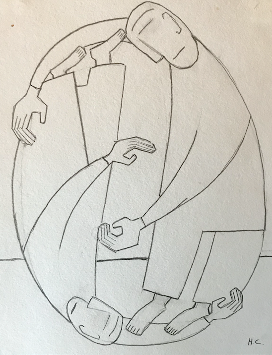"Mother and child on a tightrope" charcoal and pastel SOLD