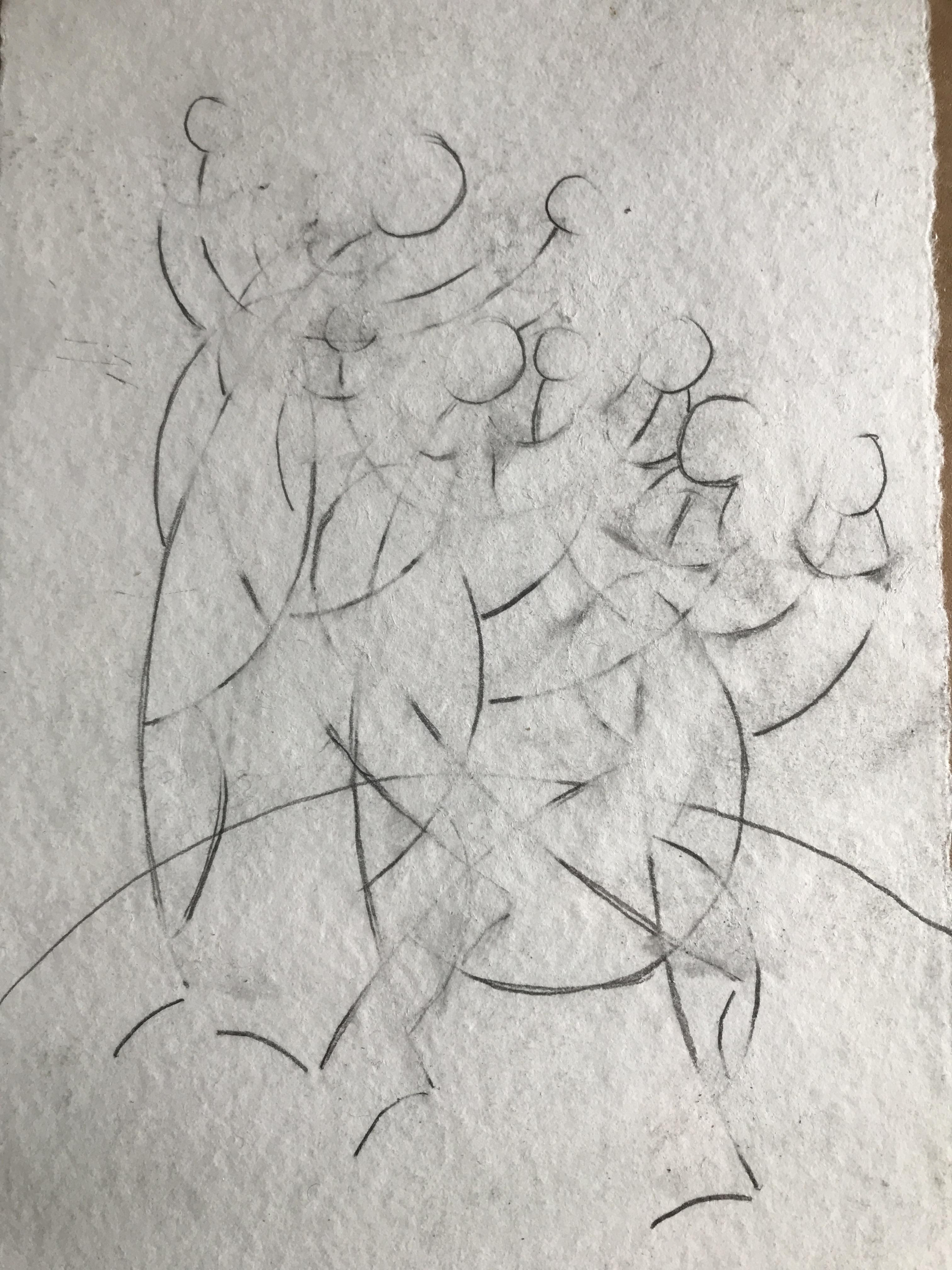 "Back to back and head-to-toe" Pastel and charcoal